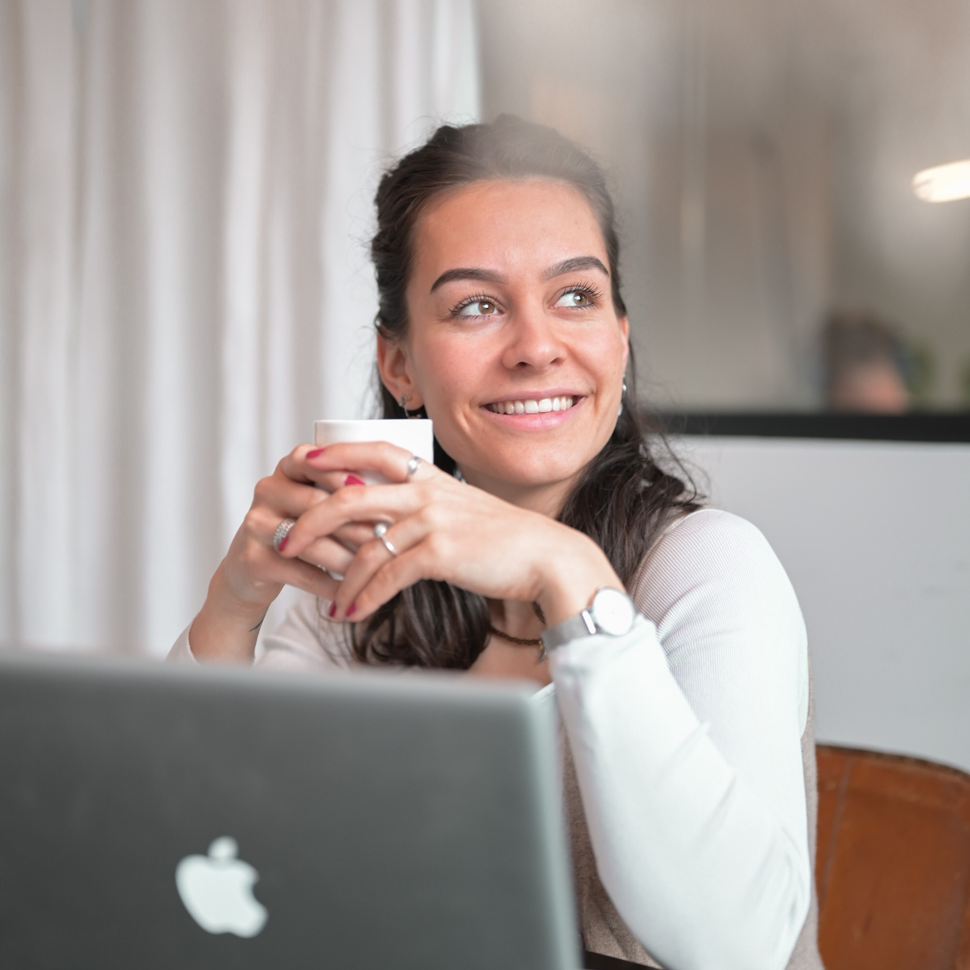 Haar dagen kan ze zelf indelen en begint ze dan ook met haar eigen ritueel. Rustig beginnen met wat creatieve dingen. Later op de dag komen de serieuze zaken zoals netwerk gesprekken aan bod.