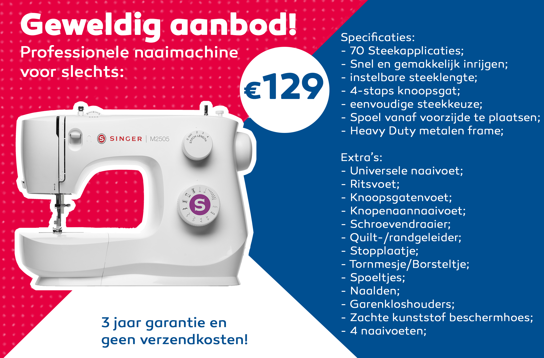 Bestel voor slechts € 129,- een professionele Singer naaimachine mee