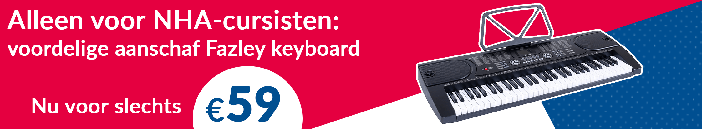 Wil je het Fazley keyboard bij jouw cursus ontvangen, geef dit dan aan bij inschrijving. Je ontvangt het keyboard én de eerste lessen snel in huis. Natuurlijk kun je het keyboard ook tijdens de cursus nog bestellen.