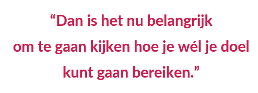 Je weet nu wat je doel is én waarom je deze nog niet hebt bereikt. Er begint op dit moment al een duidelijk beeld te vormen.