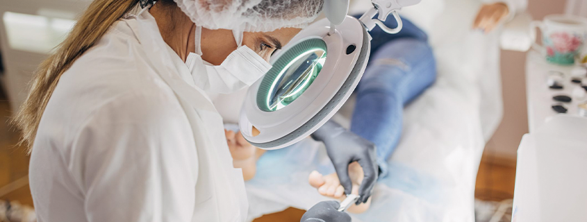 Een medisch pedicure past specialistische technieken toe. Denk hierbij aan nageltechnieken, waaronder het plaatsen van een nagelbeugel, het doen van nagelreparaties en het zetten van nagelprotheses.