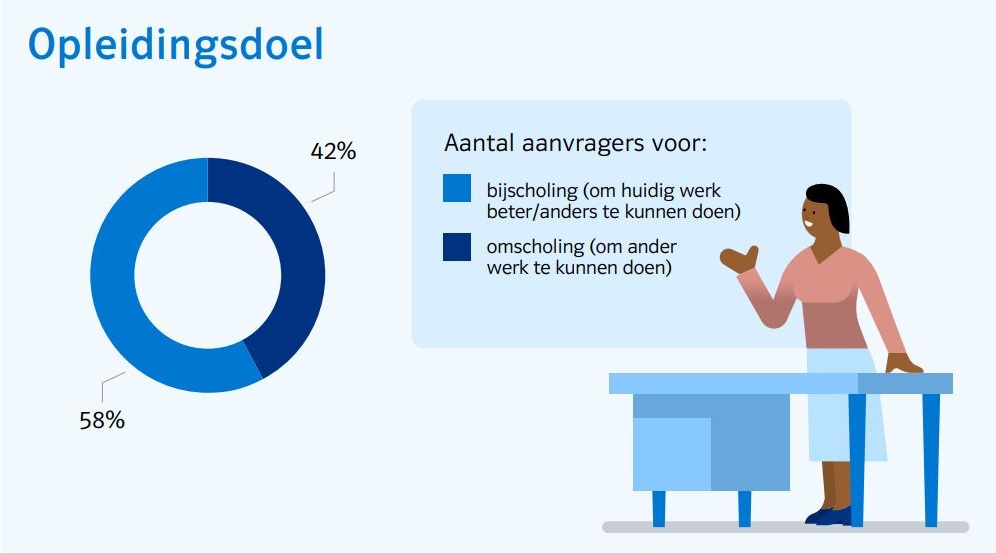De overige 42% van de aanvragers gaat nog een stapje verder en studeert voor een volledige omscholing. Door een opleiding in een andere sector te volgen creëren zij de mogelijkheid voor een carrièreswitch.