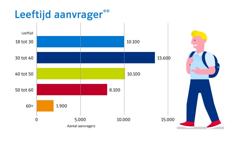 Uit de UWV-cijfers blijkt ook dat het STAP-budget binnen alle leeftijdscategorieën wordt gebruikt. Het grootste gedeelte van de aanvragers is tussen de 30 en 40 jaar.