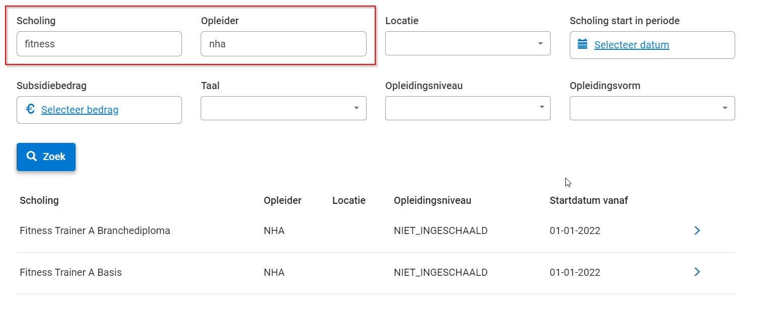Onderstaand tref je een overzicht van jouw bewaarde opleidingen.